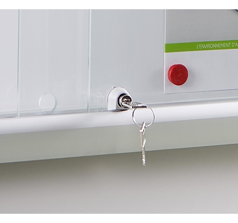 With a display capacity of 6 to 27 A4 sheets, LEADER sliding doors display cases offer the choice of a steel surface allowing the display by magnets or a corkboard to communicate your messages using push pins.