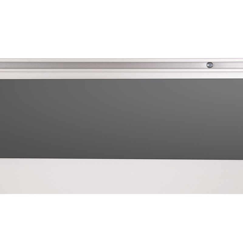 Encadrement en aluminium lisse anodisé 5µm afin d'éviter les parasites dus à la brillance des profils standards en aluminium.