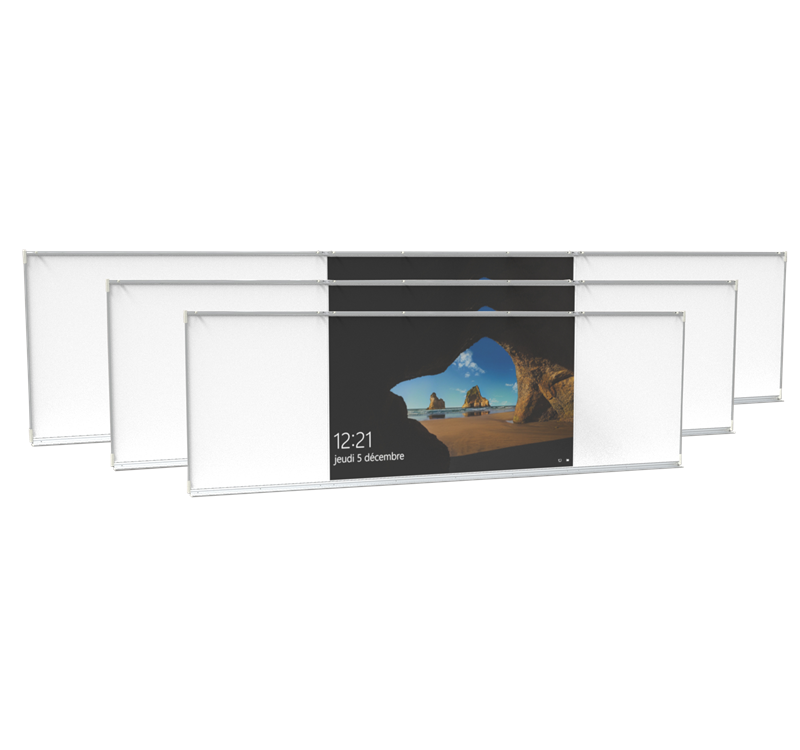 Combinant une surface centrale pour projeter à deux surfaces latérales, le tableau grande largeur MIDDLEBOARD est aussi facile à installer et réceptionner. Les salles de classe, de réunion et de formation, laboratoires et autres vont enfin pouvoir disposer de larges surfaces murales d’écriture, d’affichage et de projection. La gamme MIDDLEBOARD supprime les contraintes matérielles et financières (escalier menant à la salle de réunion étroit, budget serré) et élargit l’horizon des espaces de communication en proposant des tableaux mesurant au total jusqu'à 6 mètres de largeur.