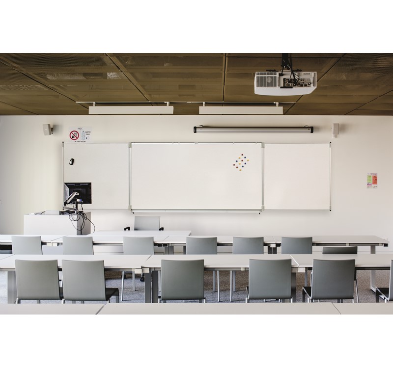 Fiable et fonctionnel, le triptyque de la gamme CLASSIC dispose de cinq surfaces à choisir identiques ou mixtes, unies ou sérigraphiées de lignages ou quadrillages en fonction des besoins (écriture au feutre ou à la craie, projection, luminosité de la salle). Sûr et respectueux de l'environnement, il est certifié NF Education et NF Environnement.