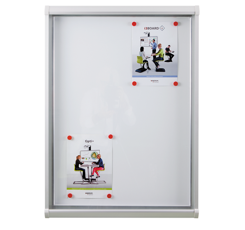 ACCÈS FACILE : La porte battante facilite au contenu pour sa mise à jour. La porte peut être posée à droite ou à gauche. Fond en tôle magnétique pour afficher avec des aimants.